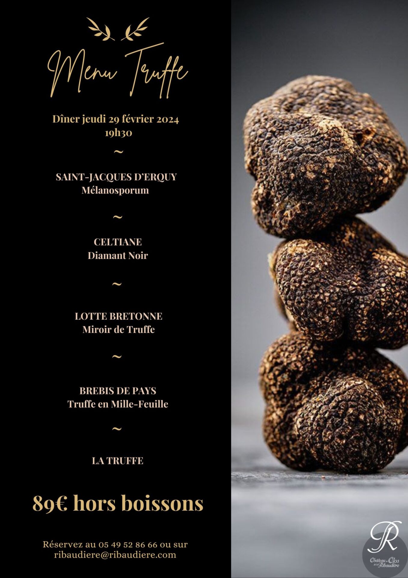 Menu Truffe dîner 29 février 2024