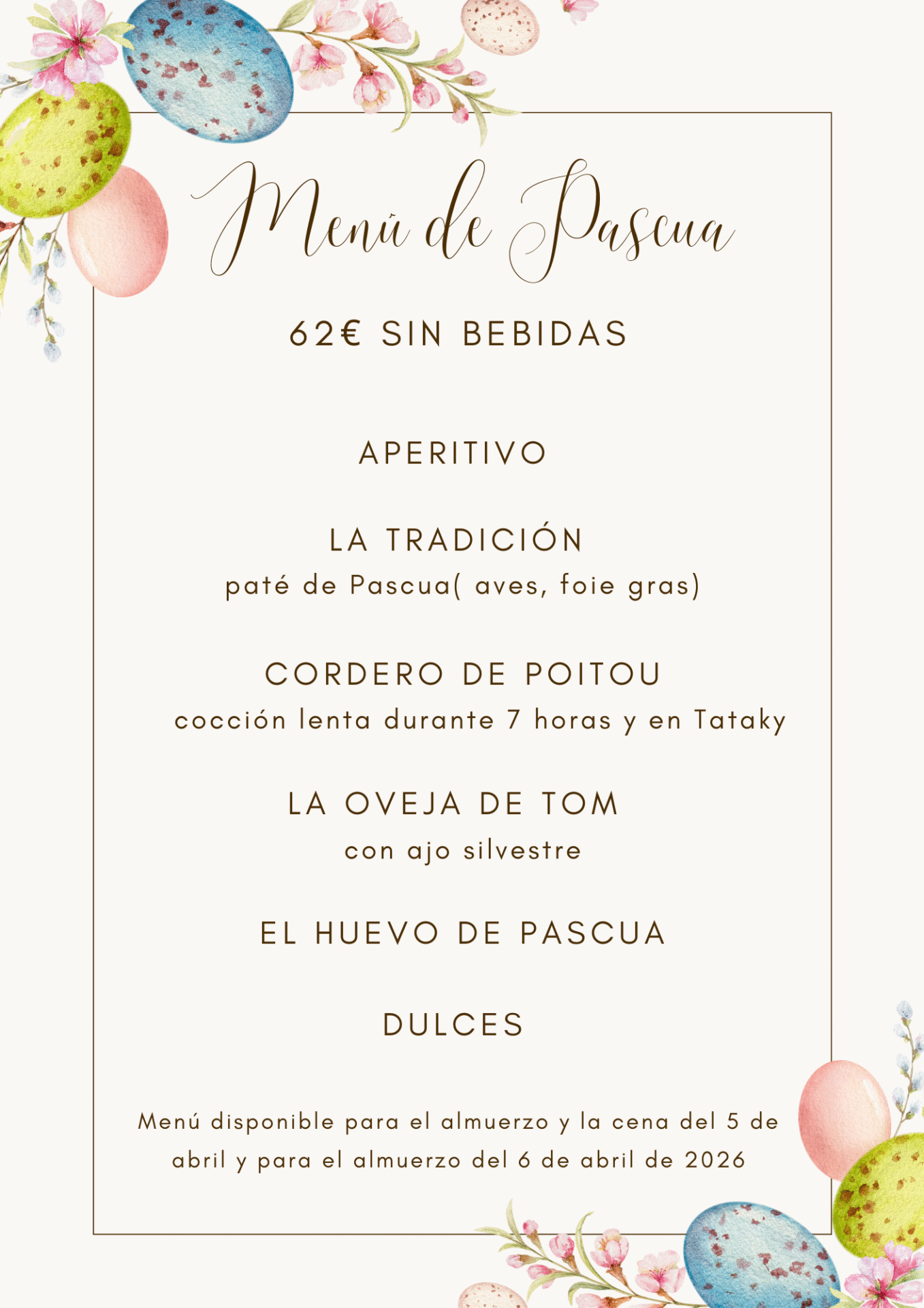 Menú de Pascua 2026